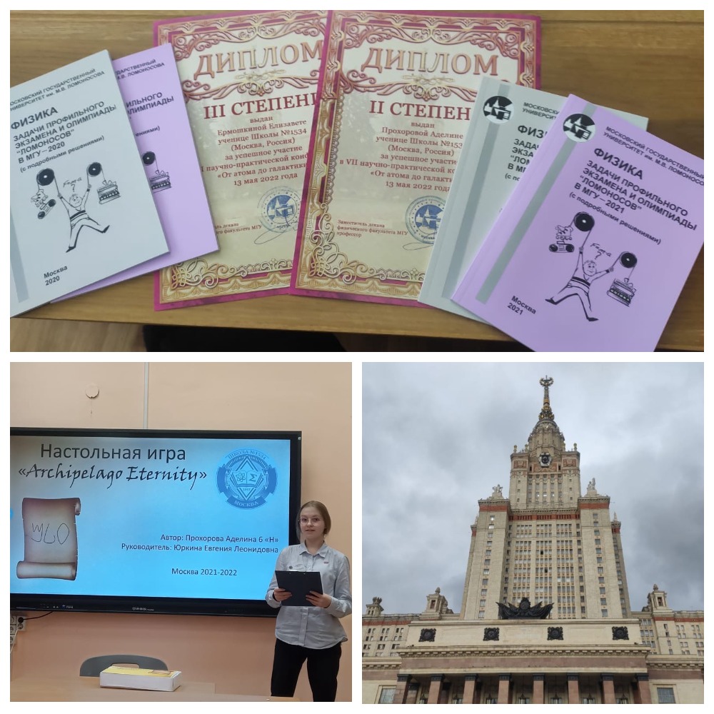Ученицы - второклассница Лиза и шестиклассница Аделина - стали призерами VII научно-практической конференции "От атома до галактики" физического факультета МГУ им. М.В. Ломоносова.